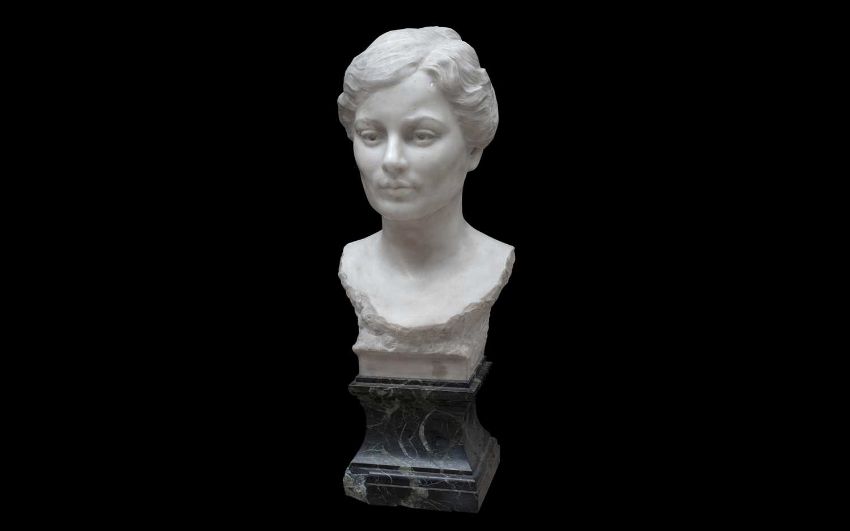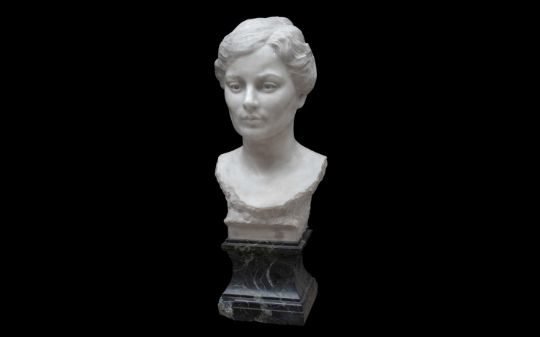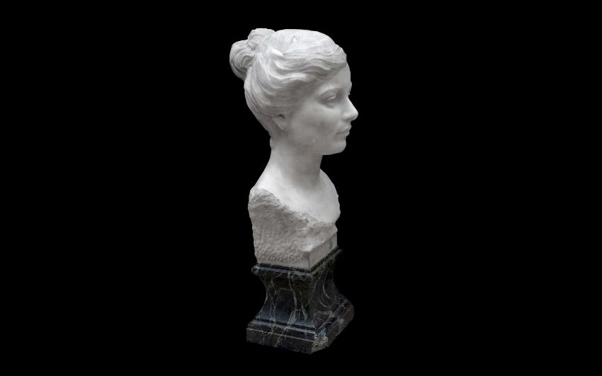 AN EARLY 20TH CENTURY LIFE-SIZE MARBLE BUST OF A LADYdepicting with hair up, below the neck carved in a rusticated style, raised on a waisted, Verde Antico marble plinth, unsigned,62cm high overall