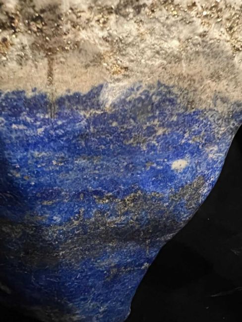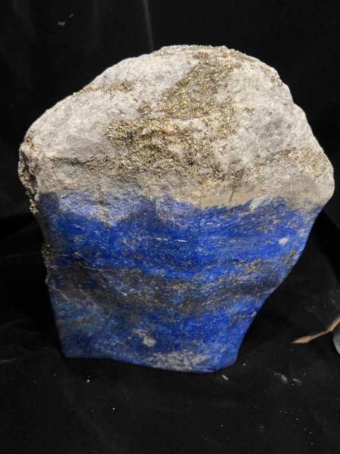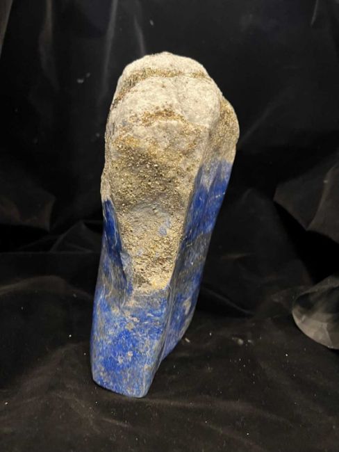 A FREE FORM LAPIS LAZULI SPECIMEN WITH PYRITEa large freefrom crystal geode of lapis lazuli from Afghanistan,26cm high x 23cm wide