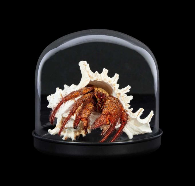 TAXIDERMY: HERMIT CRAB IN SHELL IN GLASS DOMEA fine specimen of a White-spotted Hermit Crab (Dardanus megistos). This species is found in the coral reefs and lagoons of the Indo-Pacific, from East Africa to the South China Sea, Australia and Hawaii. Housed in it’s attractive home of a Branched Murex (Chicoreus ramosus) shell. the dome 16cm highCITES - not listed