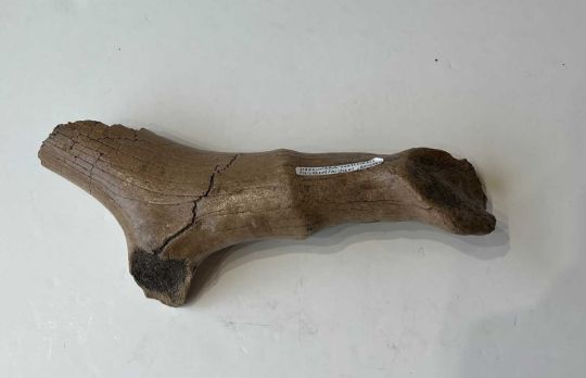 A FOSSILISED EXTINCT ‘PRAEMEGACEROS VERTICORNIS’ DEER ANTLER SECTIONwith partial skull, late Pleistocene / early Holocene, a heavily mineralised partial antler, with partial tine, and skull cap.Collected in Hungary.27.5cms longRelated to the Irish Elk, P. verticornis is an Early to Mid-Pleistocene extinct deer species which lived throughout Southern Europe.