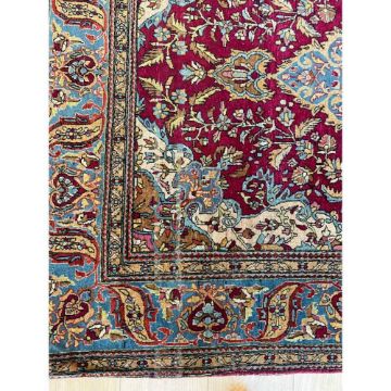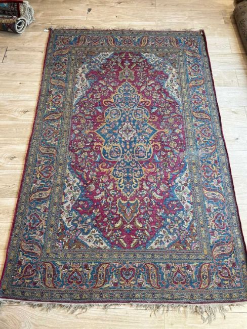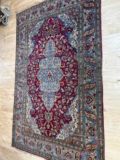 AN EARLY 20TH CENTURY KASHAN CARPETCentral Persia,217cm x 139cmCondition: In good decorative condition, two lines of wear cutting across one end to the central field, otherwise the colour is good. Selvedges with some wear, the fringes with some losses and dirt and dust.Please note that this lot is subject to the US embargo on the import of carpets of Iranian (Persian) origin as of August 6th 2018.
