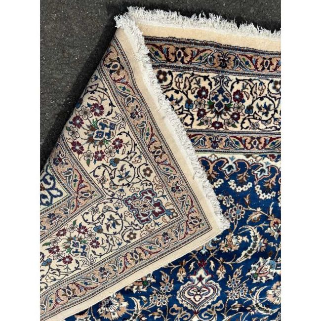 A LARGE NAIN CARPETCentral Persia,356cm x 237cmPlease note: this lot is stored off-site.Condition: Pile in good condition, colour good, light surface debris and small areas of discolouration in some places. Selvedges good, ends with only a few loses to fringes.Please note that this lot is subject to the US embargo on the import of carpets of Iranian (Persian) origin as of August 6th 2018.