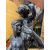 NEW SCULPTURE SCHOOL: A LATE 19TH CENTURY ENGLISH BRONZE GROUP OF A MAN AND BOYthe nude male figure holding a staff, a child raised on his left shoulder, on a circular base, dark brown patination, a lost wax cast,59cm highThe present bronze bears many traits of the New Sculpture artists, such as Alfred Gilbert, Sir William Reid Dick. The pose is loosely derived from an antique Roman sculpture of the dancing faun with the infant Bacchus on his shoulders, which was copied by many of the Neapolitan foundries in the late 19th century.