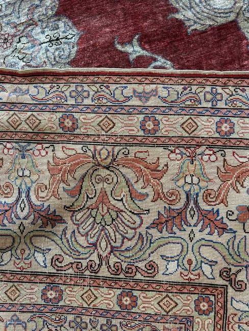 A FINE SILK KAYSERI CARPET WITH GOLD THREAD, CENTRAL TURKEYcira 1970,308cm x 196cmCondition: Generally in good condition, minor signs of use.