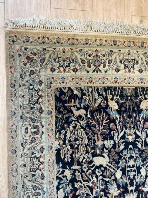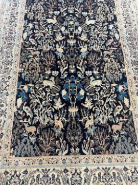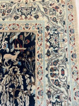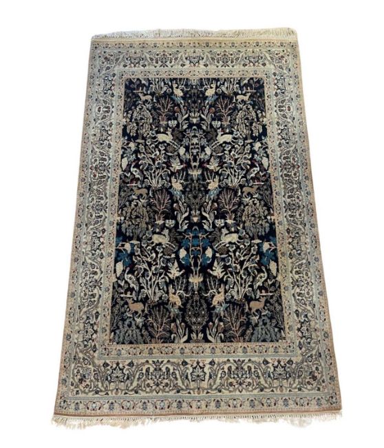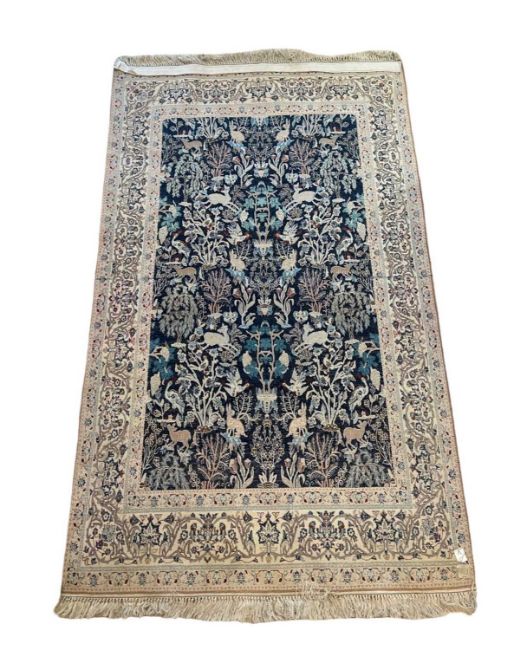 A PART SILK NAIN PAHLEVAN SAFAI CARPET, CENTRAL PERSIAthe Persian rug decorated with animals including hares, deer and birds, with fringe to both ends,182cm x 112cm