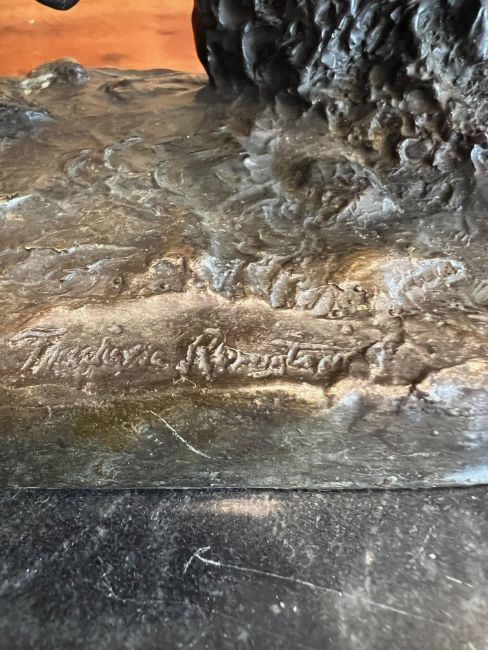AFTER FREDERIC REMINGTON (AMERICAN,1861-1909): 'CHEYENNE' BRONZEdepicting a native American Indian on horseback, on naturalistic base, bearing signature 'Frederic Remington', on a marble plinth,24cm high overall