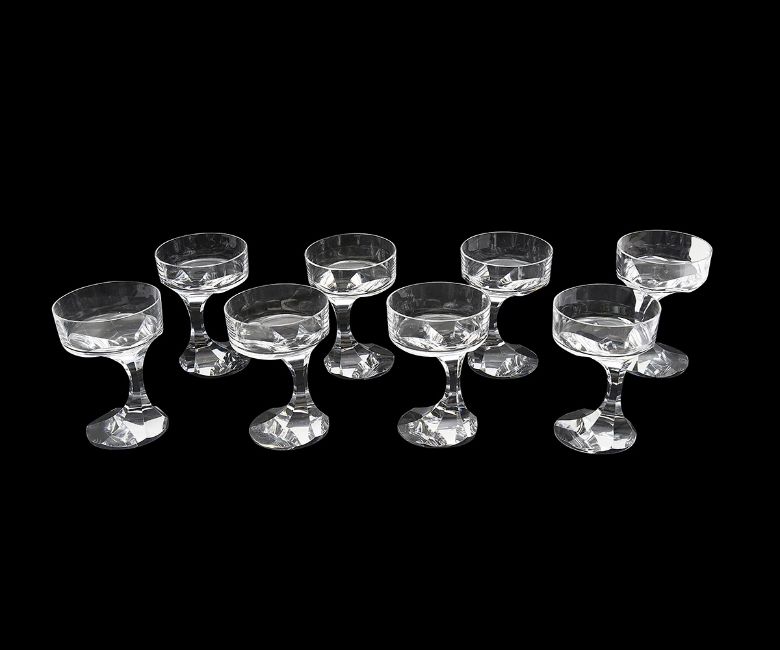 BACCARAT: A SET OF EIGHT NARCISSE WINE GLASSESof unusual design, the bowls raised on a faceted asymmetric stems over shaped feet, marked to the underside 'BACCARAT FRANCE',14cm high (8)