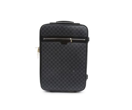 A LOUIS VUITTON GRAPHITE CANVAS DAMIER TROLLEY BAGthe small suitcase of coated fabric, on wheels, with padlock57cm high x 36cm wide