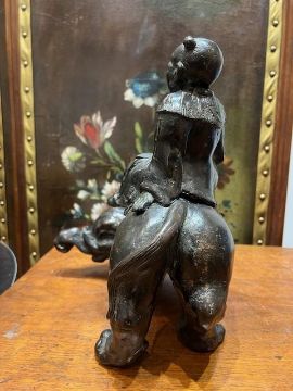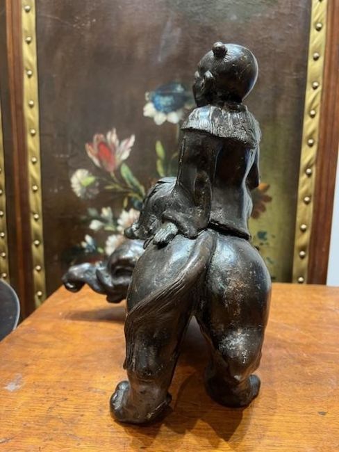 A 19TH CENTURY CHINESE BRONZE MODEL OF AN ELEPHANT RIDDEN BY A BOYdark brown patination,30cm high