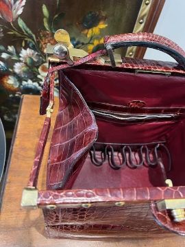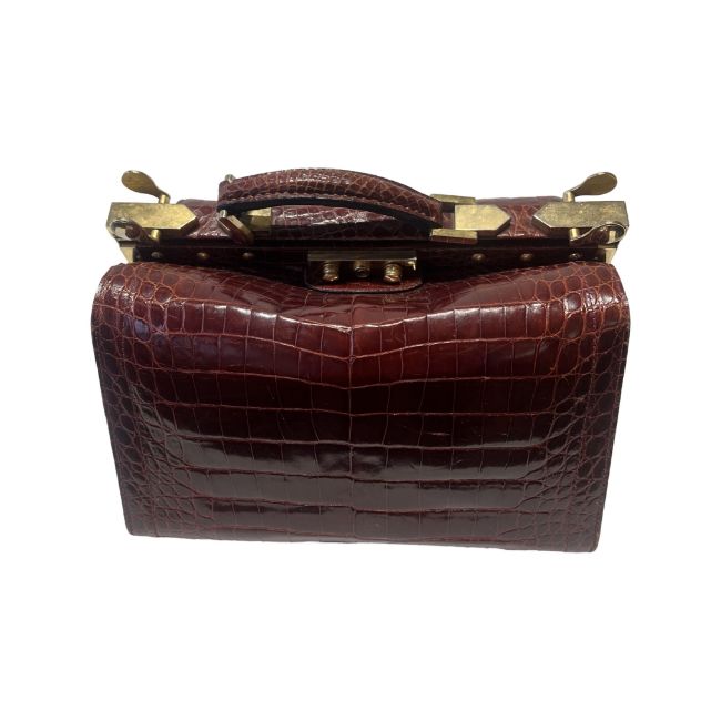 A CROCODILE SKIN AND BRASS MOUNTED BAGin the style of a doctor's bag with label inside 'MAPPIN & WEBB', the clasp opening to an interior with a zipped pocked to each side, 33cm wide x 20cm deep x 30cm high