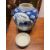 A LATE 19TH / EARLY 20TH CENTURY CHINESE GINGER JAR AND COVERQing Dynasty, with blue and white decoration of interior scenes, raised on a hardwood stand,the jar 25cm highGood condition.