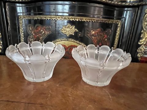 ROTHSCHILD PROVENANCE: A PAIR OF STERLING SILVER AND GLASS BUTTERDISHES C. 1838the pair of 19th century, early Victorian stering silver and frosted glass butter dishes by George Richmond Collis,the thick cut and frosted glass scallop edged bowls surmounted by circular faceted silver covers with handles modlled as a dairy cows on naturalistic bases, hallmarked, raised on matching shaped and faceted silver bases, the bases and lids engraved with the crests of Baron Rothschild featuring the ducal coronet, lids, finials and bases all fully hallmarked Birmingham 1838 by George Richmond Collis, 735 grams (23.63 ozt) silver weight,13cm high x 16.2cm wide (2)Good condition.