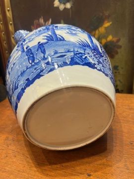 A RARE EARLY 19TH CENTURY BLUE AND WHITE TRANSFER WARE JUG WITH “MASON ARMS”22cm high