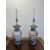 A PAIR OF CHINESE STYLE CERAMIC LAMP BASESof baluster form, decorated with flowers on a light grey ground, one badly cracked and damaged,74cm high including fitments (2)