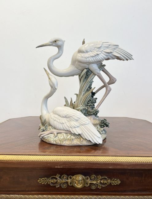 A LLADRO PORCELAIN GROUP OF CRANES 'MARSHLAND MATES'marked to the underside 'Lladro' and numbered 5691,31cm high
