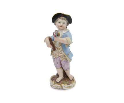 MEISSEN: A 19TH CENTURY FIGURE OF A BOY FLAUTIST CIRCA 1850Size 14cm High 5cm DiameterCondition minor restoration to tip of flute.