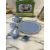 A WEDGWOOD JASPERWARE MINIATURE TEA SETcomprising an oval tray, teapot, milk jug, sugar bowl and tea caddy, all in blue jasperware with white classical decoration, marked the underside 'WEDGWOOD ENGLAND',the tray 17cm wide