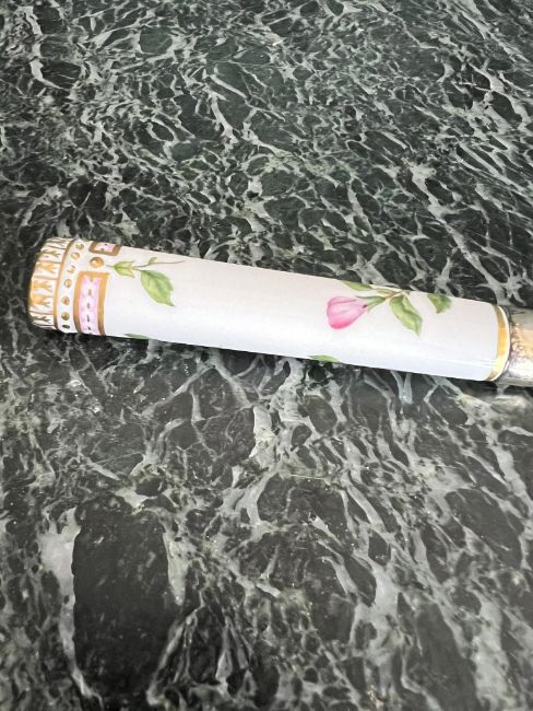A ROYAL COPENHAGEN FLORA DANICA PORCELAIN AND STERLING SILVER GILT PAPER KNIFEby A. Michelsen, with porcelain handle decorated with flowers and silver gilt blade marked 'MICHELSEN COPENHAGEN STERLING DENMARK',24cm in length