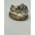 A RARE MID 18TH CENTURY ST JAMES PORCELAIN AND AGATE PUG BONBONNIEREthe English Chelsea porcelain pill or snuff box with hinged cover modelled as a mother pug dog with three puppies, their fur delicated picked with dark flecks, a blue ribbon tied around her neck, on a white cushion with flowerhead decoration, with silver gilt mounts, the interior painted with floral sprigs on a white ground, the underside formed as a slice of banded agate,5cm wide