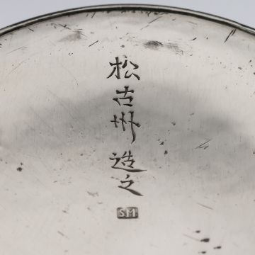 A LATE 19TH CENTURY JAPANESE SOLID SILVER WINE JUG, SADAJIRO & MUSASHIYA C. 1890 19th Century Japanese Meiji period silver wine jug, simply exceptional and magnificent quality, The lidded wine jug is of classical shape, mounted with a finely decorated finial and unusual scroll handle and applied with a pierced collar depicting flying birds amongst flowers, standing on a domed foot chased with acanthus leaves. Signed with Japanese characters and makers mark M.S for The Musashiya Company.Height: 36 cm // 14.17 inches Width: 16 cm // 6.30 inches Depth: 11 cm // 4.33 inches Weight: 1200 gGood condition.Footnote: The Musashiya Company, created by Ozeki Yahei and under the aegis of his son Sadajiro, became perhaps the most successful of the concerns selling high-quality decorative art during the Meiji period. Sadajiro’s openness to collaborate with enterprises such as Liberty of London enthused him to work with some of the finest Japanese artists and artisans.
